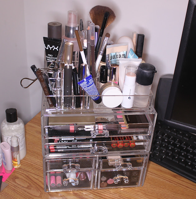 This past Christmas, my partner and I agreed to skip giving each other gifts and to instead just enjoy our time together. Being a bit of brat, however, my partner cheated and got me a "I heard your last week of classes was tough" present: this plastic storage tower. I've been wanting a tall tower with drawers for about a year now, since I found it difficult sometimes to navigate a flat tray and I wanted to conserve space on my desk. This sneaky present absolutely fits the bill!